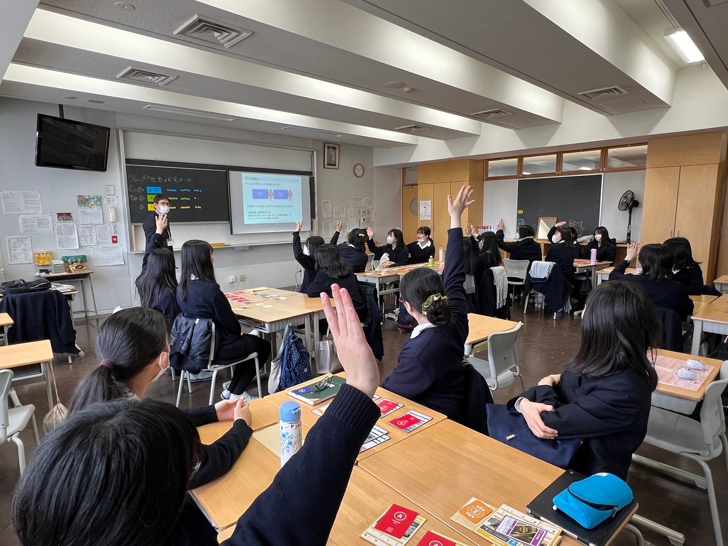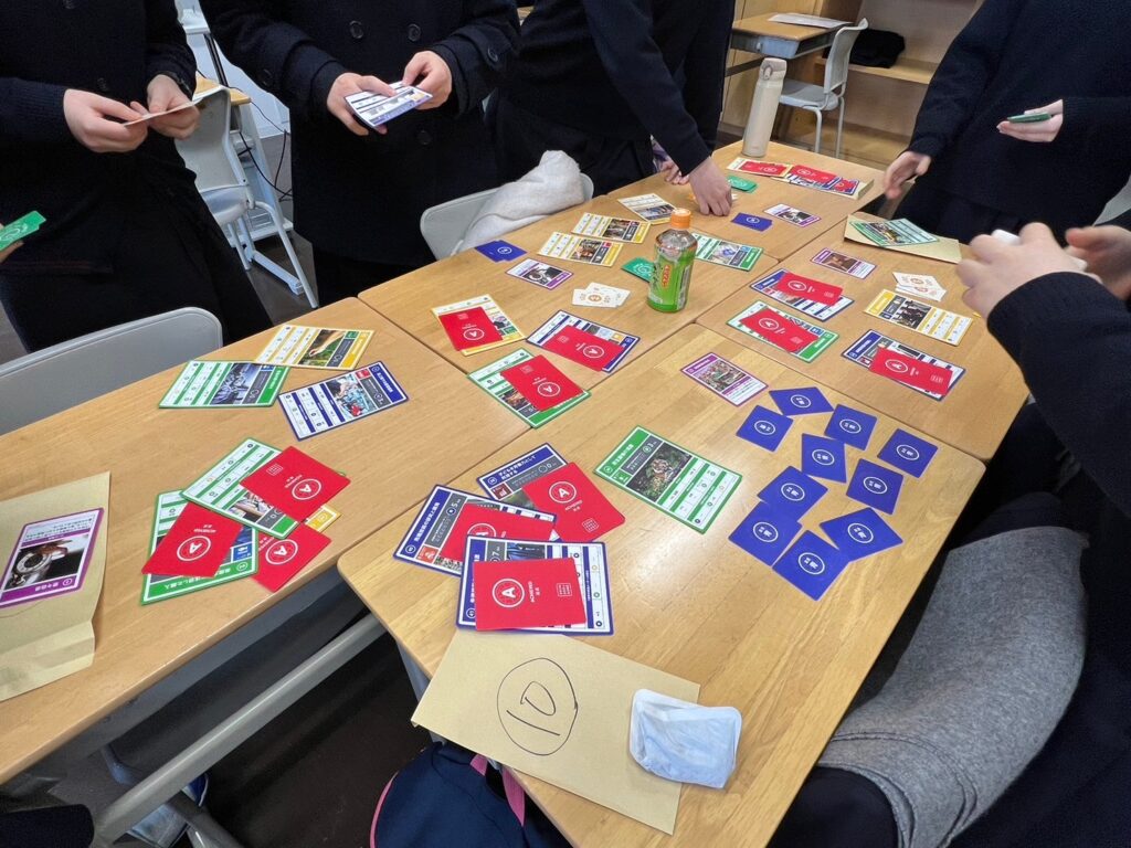ゲームの振り返りでは何がどうしてそうなった?を振り返る旅にでます。生徒さんの中にはモヤモヤしたり、潜在的にあれ?なんで?を抱えている人たちの意見を引き出します。その上でなぜそうなったのかを全体で共有・意見交換することでゲームの結果への納得へつなげていきます。とても印象的だったのはその能動的な力。積極的に発言する、自分の意見をしっかり言う。このあたりの教育がしっかりされているとはっきりわかる生徒さんたちの行動が垣間見えました。私のような昭和世代の人間は理解や正解を持っていても発言の機会を与えられたら答えればいいや。的な育ち方をしてきた気がします。現在は積極的に発言し、誤りだったとしてもそれを誤りとせずに改善するエネルギーや提案力がもとめらる時代です。