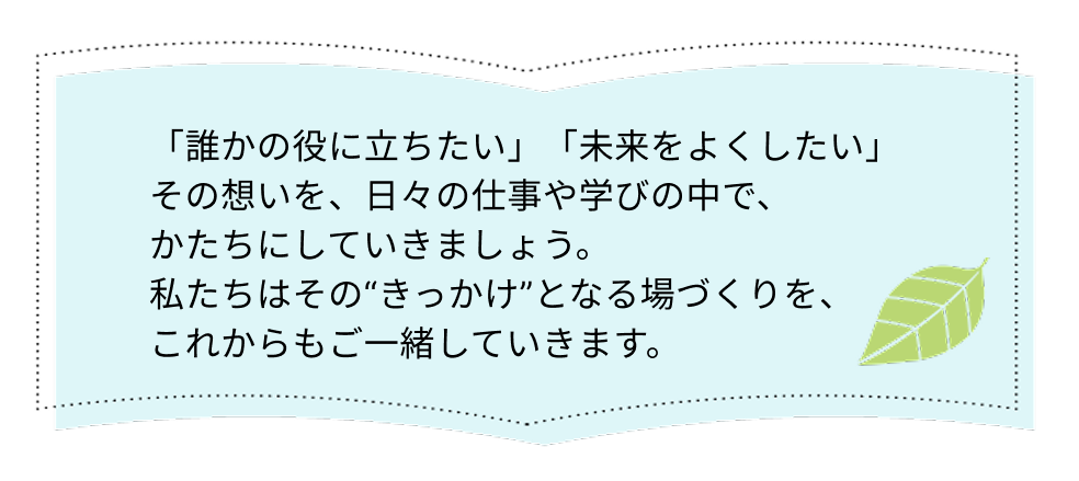 だからこそ私たちは、誰もが社会の一員として、何らかの形で「より良い未来に貢献できる」という視点を持つことが重要だと考えています。